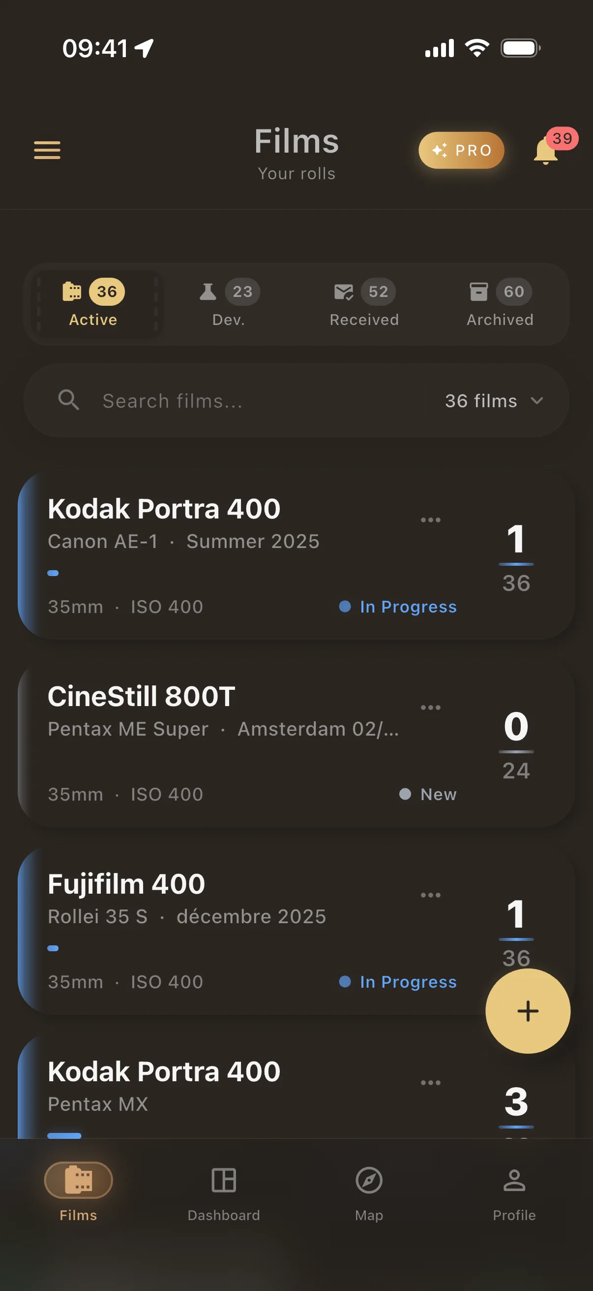 - Follow the roll lifecycle. Move each roll through its natural stages: shooting, at lab, developed, archived. Always know which rolls are active, which are waiting at the lab, and which are ready to review.